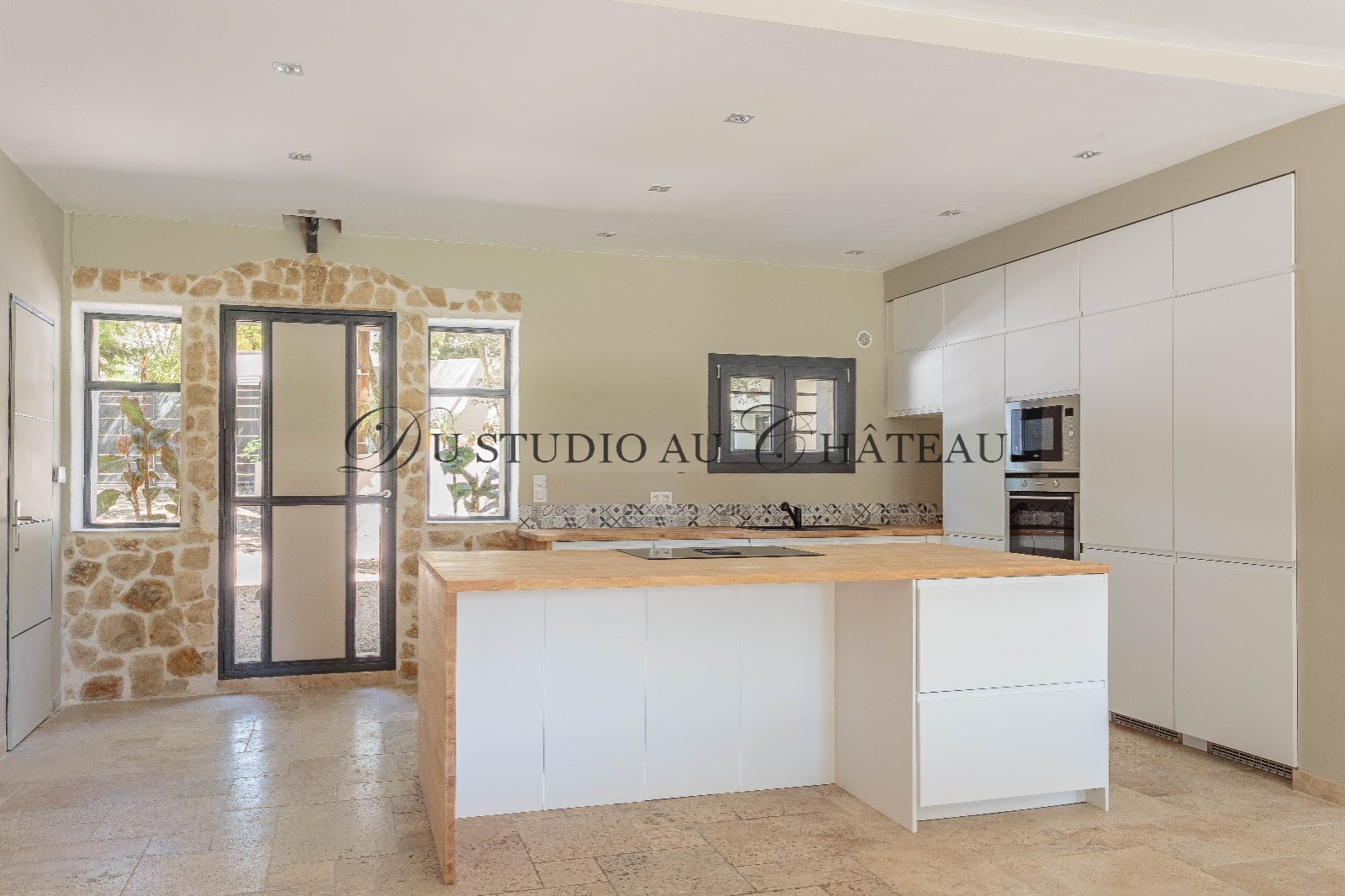 MAISON DE VILLE contemporaine en pierres de 340 M² à 10 minutes Aix Nord à pied du centre-ville, rénovée avec harmonie et authenticité, quartier calme et privilégié, espace de réception de 120 M² (salon, salle à manger, cuisine neuve avec ilot central), ouvrant sur une belle terrasse orientée sud,