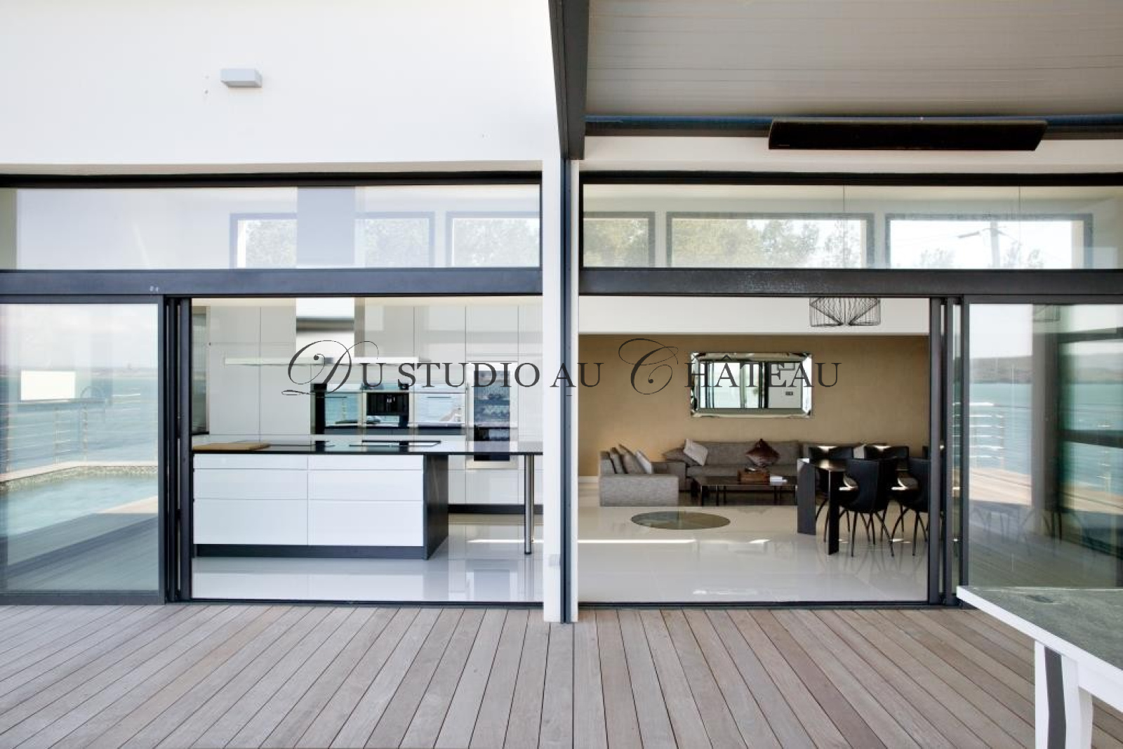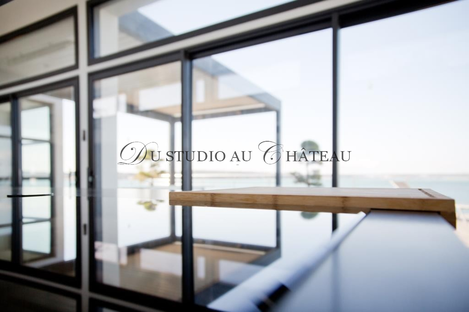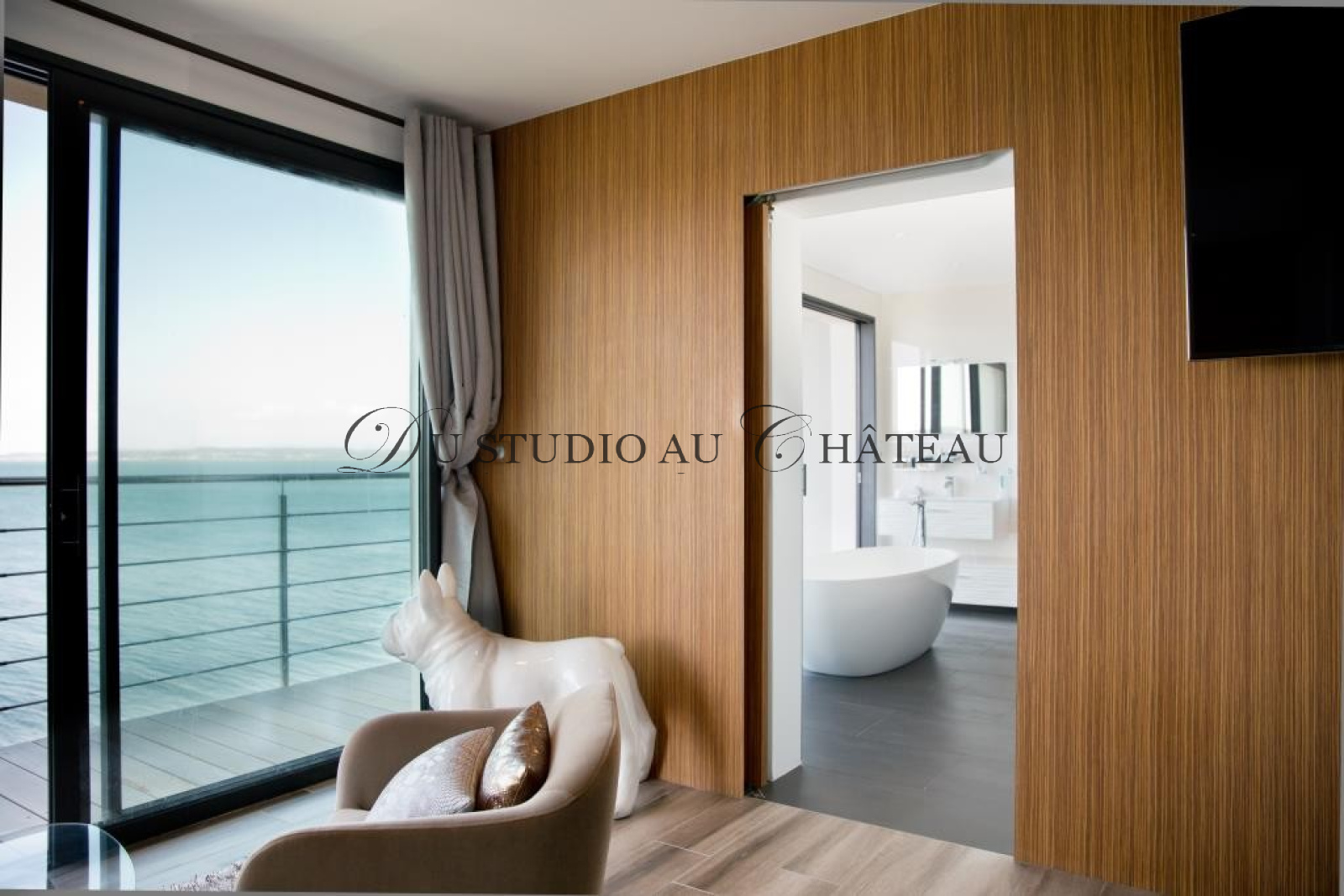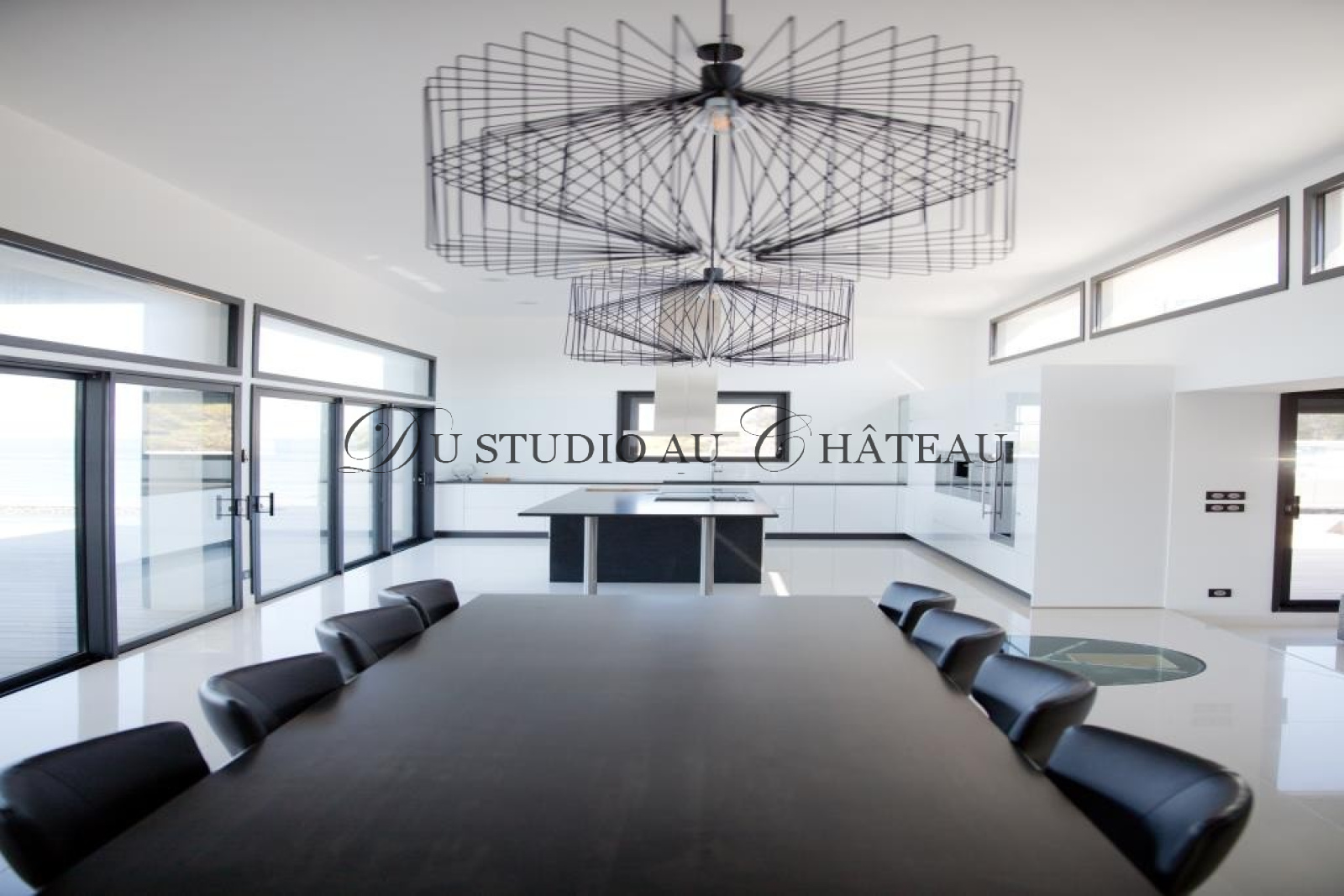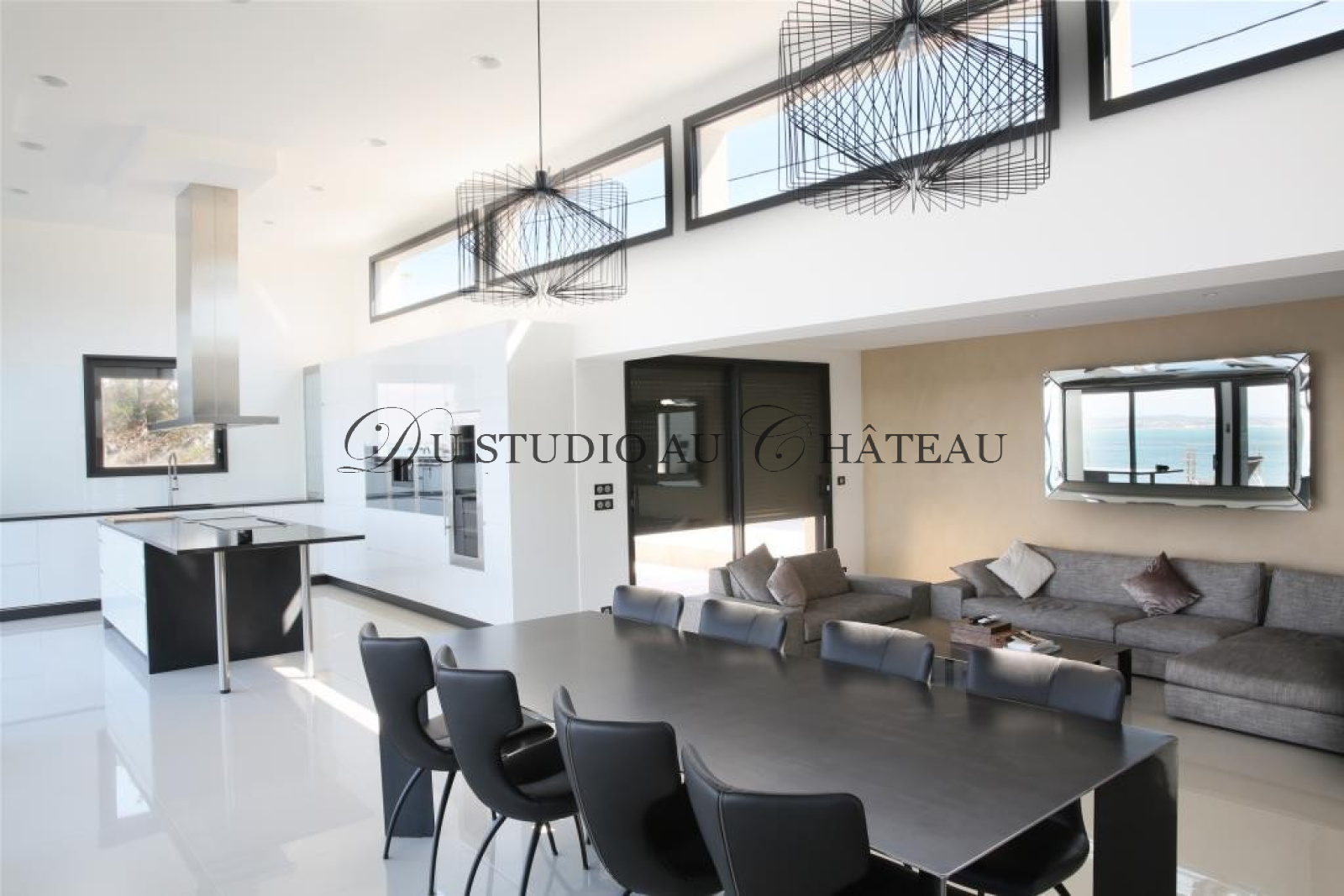 Au grand calme, les pieds dans l'eau, vue panoramique, propriété exceptionnelle très contemporaine et sans vis-à-vis. Immense salon/ salle à manger, cuisine équipée, véranda bio climatique, cave à vin, chauffage au sol et rafraichissant, absolument unique !