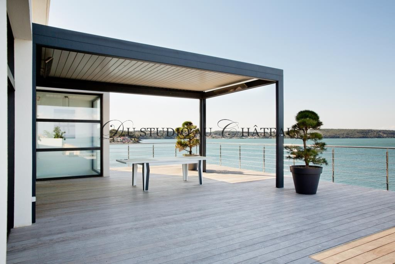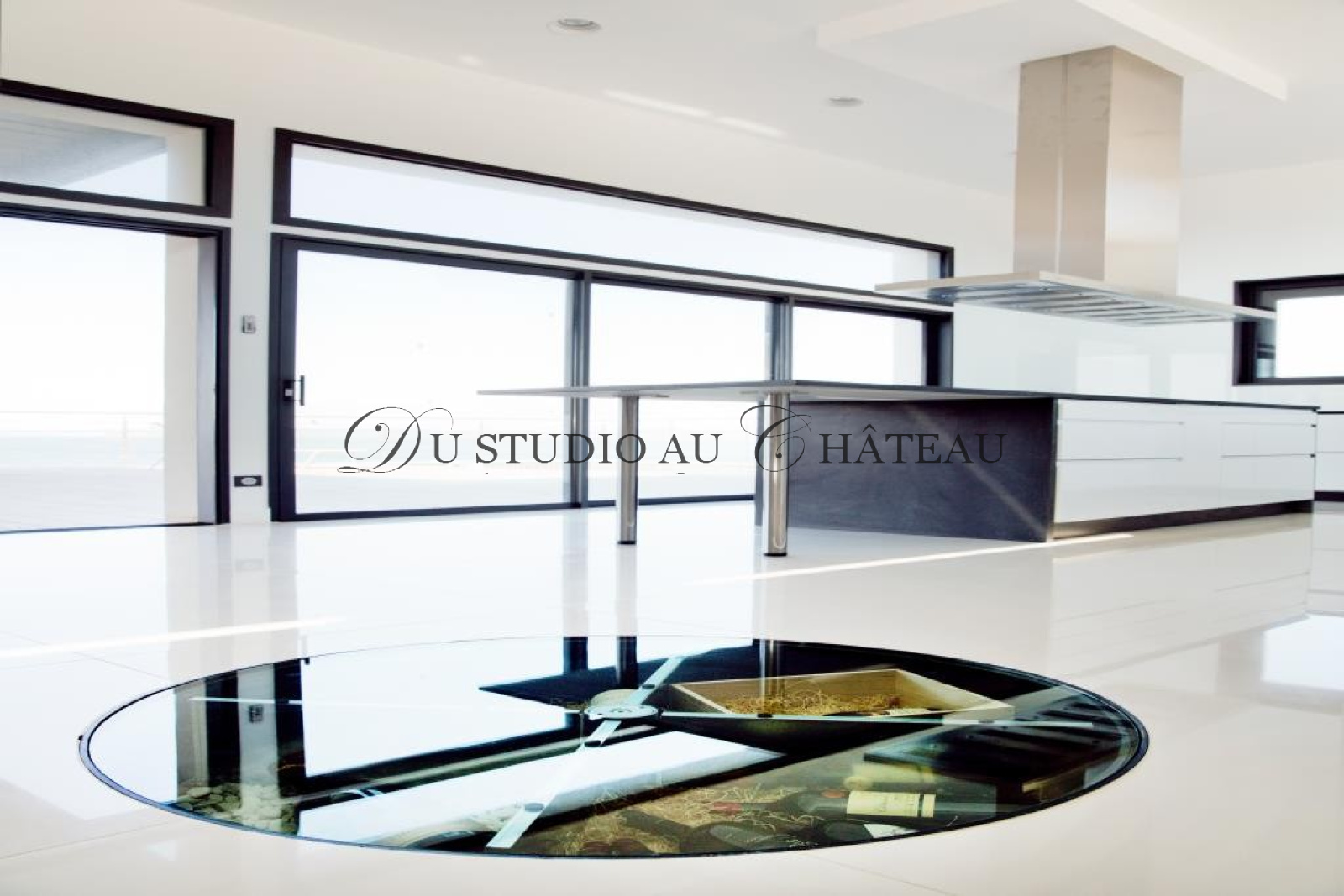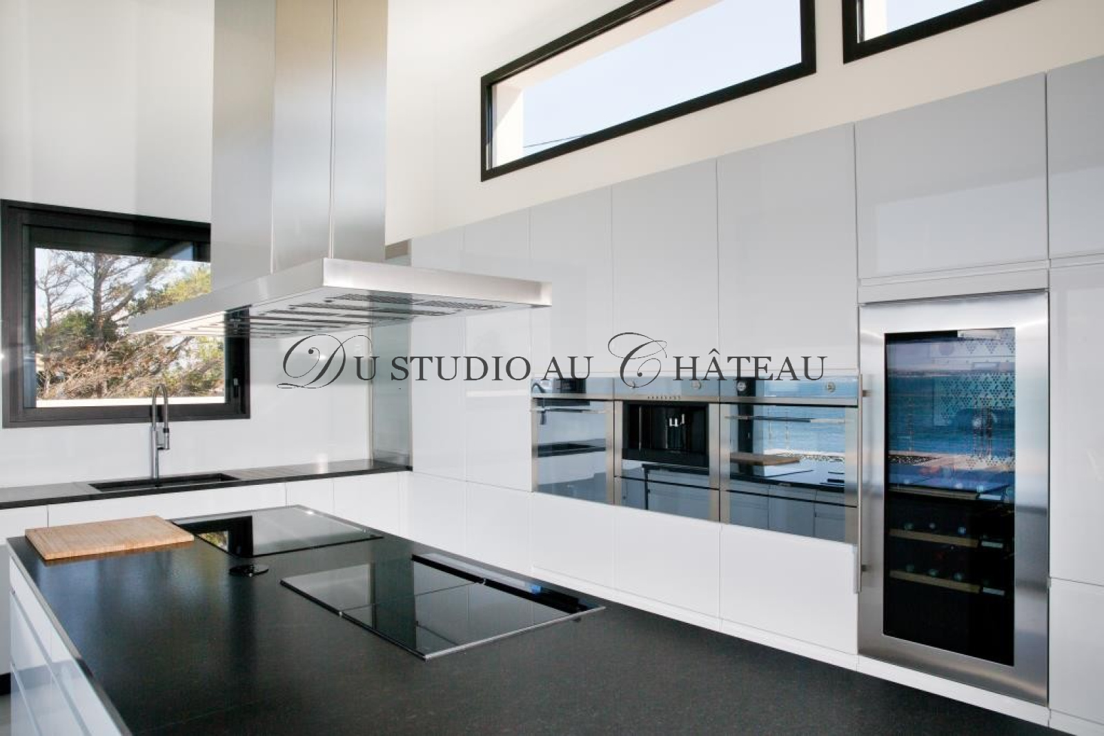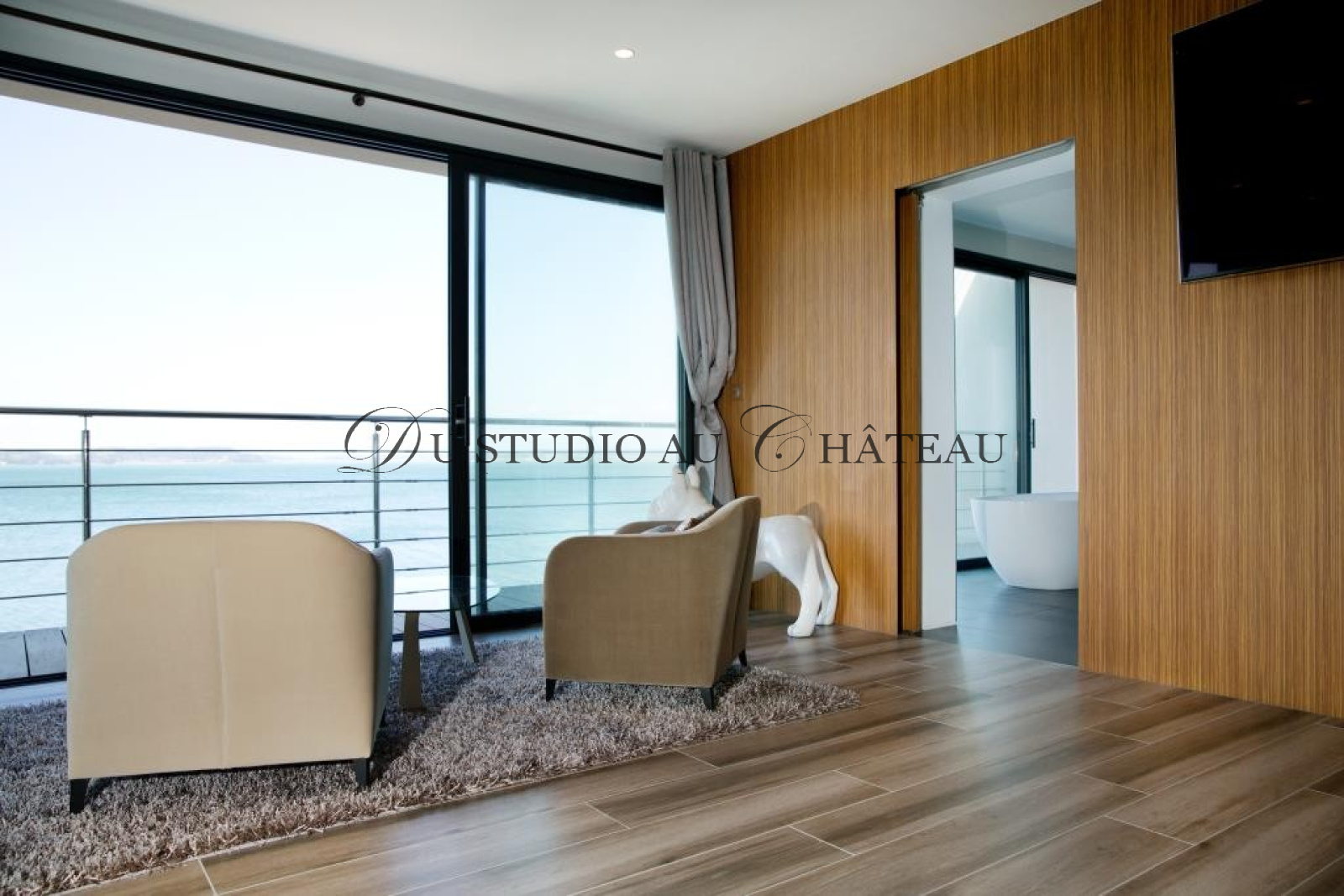 Au grand calme, les pieds dans l'eau, vue panoramique, propriété exceptionnelle très contemporaine et sans vis-à-vis. Immense salon/ salle à manger, cuisine équipée, véranda bio climatique, cave à vin, chauffage au sol et rafraichissant, absolument unique !