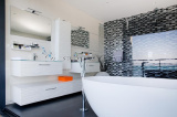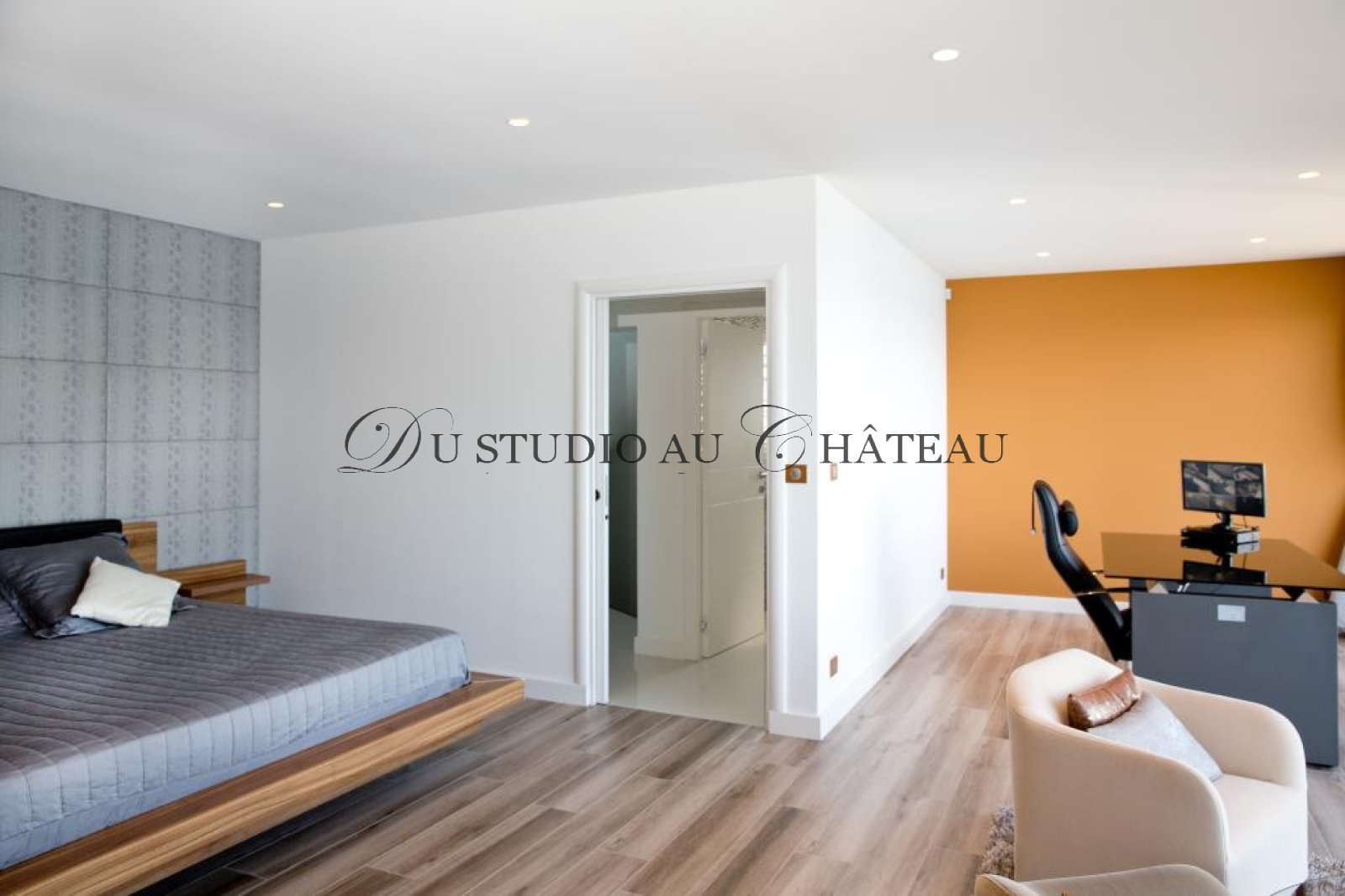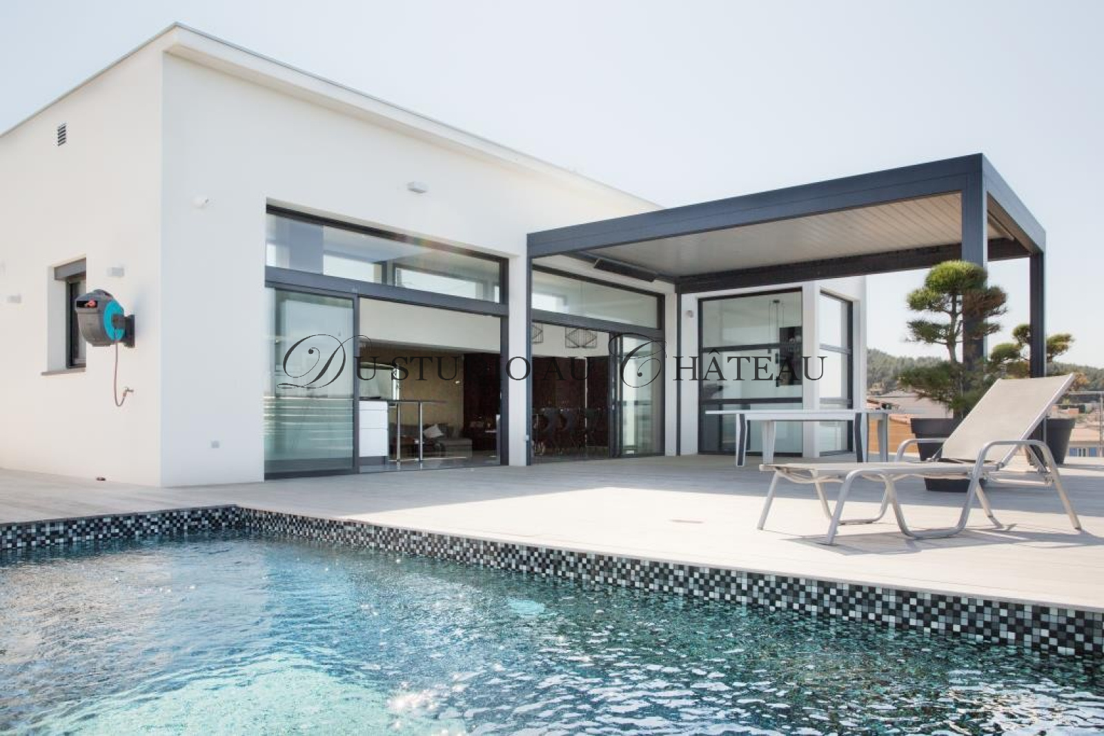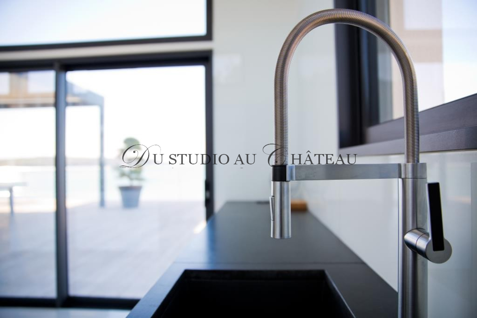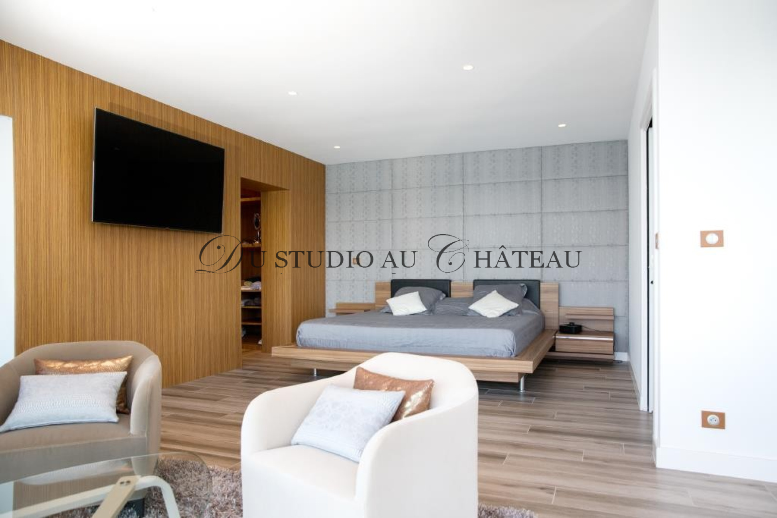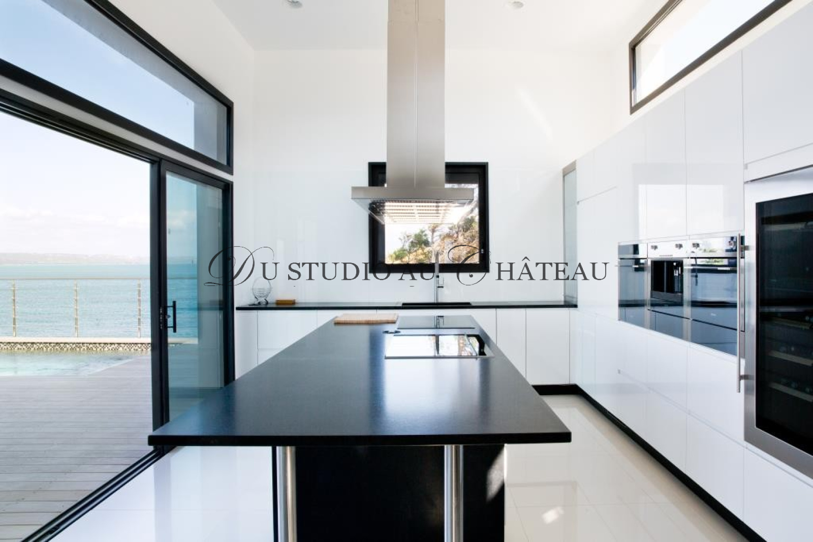 Au grand calme, les pieds dans l'eau, vue panoramique, propriété exceptionnelle très contemporaine et sans vis-à-vis. Immense salon/ salle à manger, cuisine équipée, véranda bio climatique, cave à vin, chauffage au sol et rafraichissant, absolument unique !